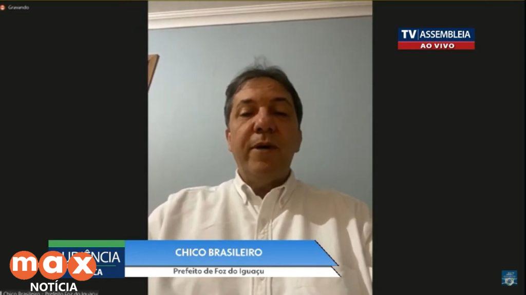 As medidas tomadas pelo prefeito Chico Brasileiro no enfrentamento da pandemia em Foz do Iguaçu são referência na retomada dos eventos do Paraná, afirmaram, nesta terça-feira, 24, os representantes do setor durante audiência pública da Frente Parlamentar sobre o Coronavírus. Chico Brasileiro participou da reunião realizada de forma on-line pela Assembleia Legislativa.