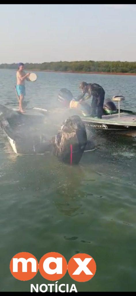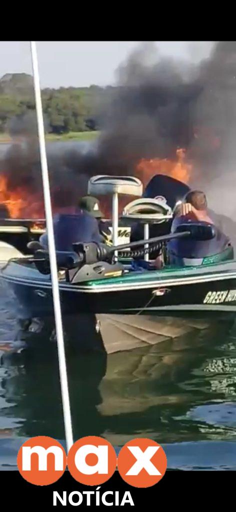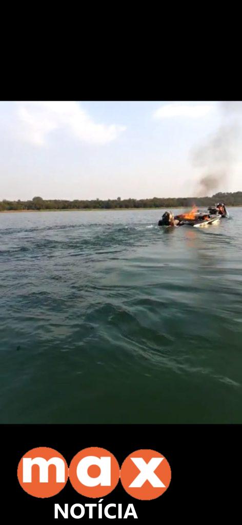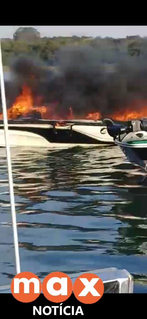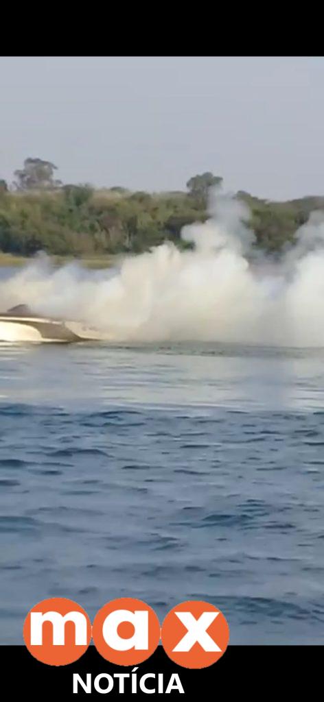 Lancha sofre pane elétrica e pega fogo no lago de Itaipu