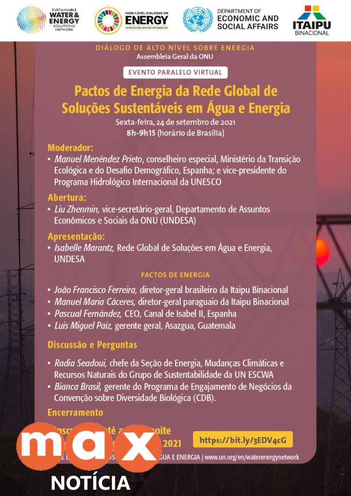 O anúncio será durante o evento “Pacto de Energia da Rede de Soluções Sustentáveis de Água e Energia”. A Itaipu, juntamente com o Departamento de Assuntos Econômicos e Sociais da ONU (Undesa), é uma das instituições fundadoras da Rede Global, que compartilha as melhores práticas na gestão da água e da energia para a promoção do desenvolvimento sustentável.