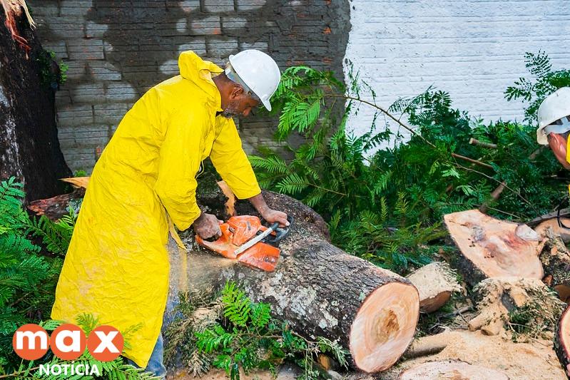 Em casos de árvore caída, tanto em espaços públicos como particulares, a orientação é ligar para o Corpo de Bombeiros no número 193 ou diretamente para a Defesa Civil no 199.