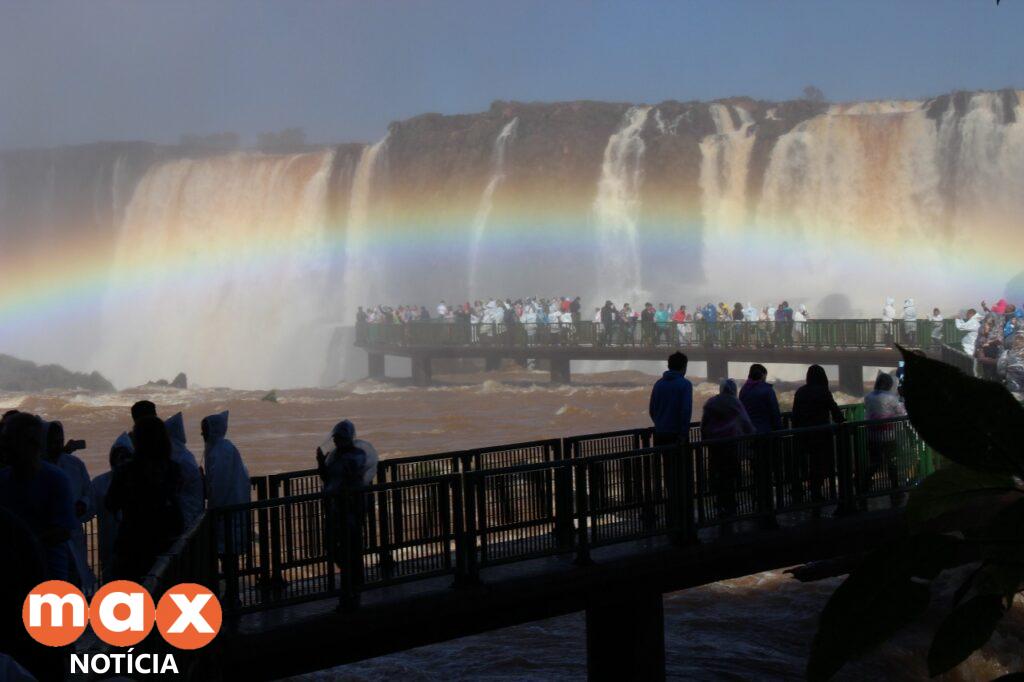 Os milhares de visitantes que viajaram para Foz do Iguaçu neste final de semana prolongado tiveram a oportunidade de presenciar as Cataratas do Iguaçu em uma forma ainda mais exuberante, chegando a ultrapassar a vazão de dois milhões e 500 mil litros de água por segundo, o que representa um milhão a mais que o normal.