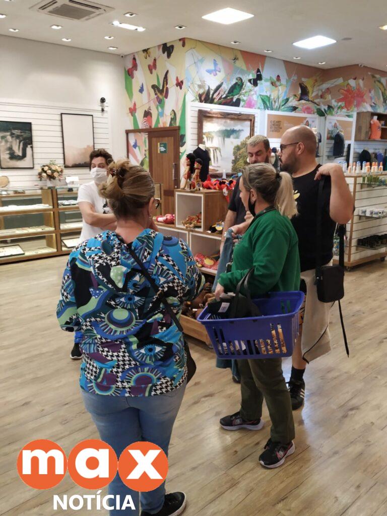 Tiago e a família realizaram a visita logo no período da tarde. Uma das primeiras paradas foi na loja de lembranças do Centro de Visitantes, local onde inicia o passeio no parque. Tiago, ao tomar conhecimento dos projetos de compra sustentável dos produtos comercializados nas lojas do Parque Nacional do Iguaçu, quis adquirir camisetas da onça-pintada para ele e todos da família, que inclui o companheiro, Fernando Poli, e a mãe, Cintia Abravanel.