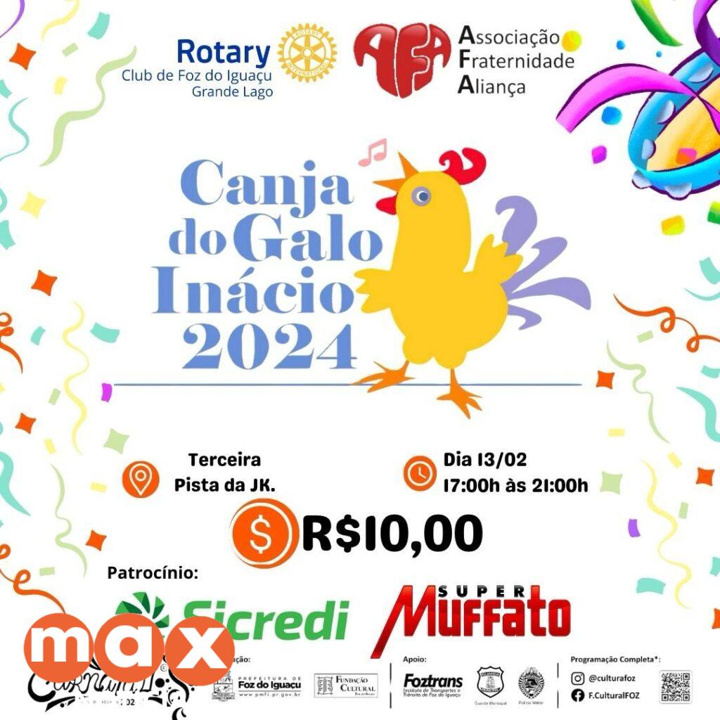 Como já é tradição no carnaval iguaçuense, no último dia de festa do Carnafalls (13), moradores e turistas podem saborear a Canja do Galo Inácio, que este ano irá beneficiar a Associação Fraternidade Aliança (AFA), que atende cerca de 450 crianças e adolescentes.