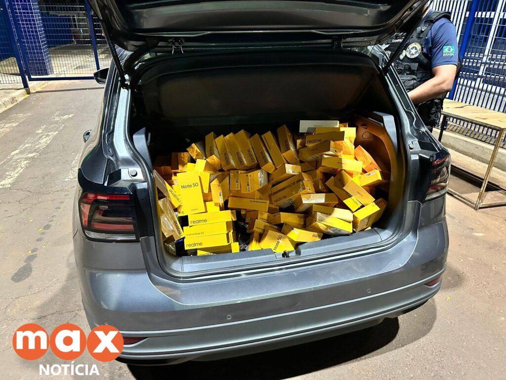 A Receita Federal apreendeu R$ 100 mil em mercadorias contrabandeadas e descaminhadas durante a abordagem a um veículo no posto da Polícia Rodoviária Federal (PRF) em Santa Terezinha de Itaipu, no oeste do Paraná. O veículo, que pertence a uma locadora, estava a caminho de Maringá e transportava 120 celulares, diversos perfumes e aparelhos de TV box, todos sem a devida documentação fiscal.