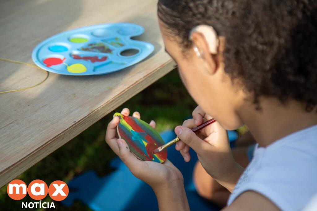 Judite Maria Dalcin, coordenadora do Projeto Anjo Gabriel Cáritas, acompanhou 30 crianças de 6 a 11 anos, nas atividades. Elas participaram das oficinas de construção de instrumentos musicais, pintura e jardinagem, nesta terça-feira (17).