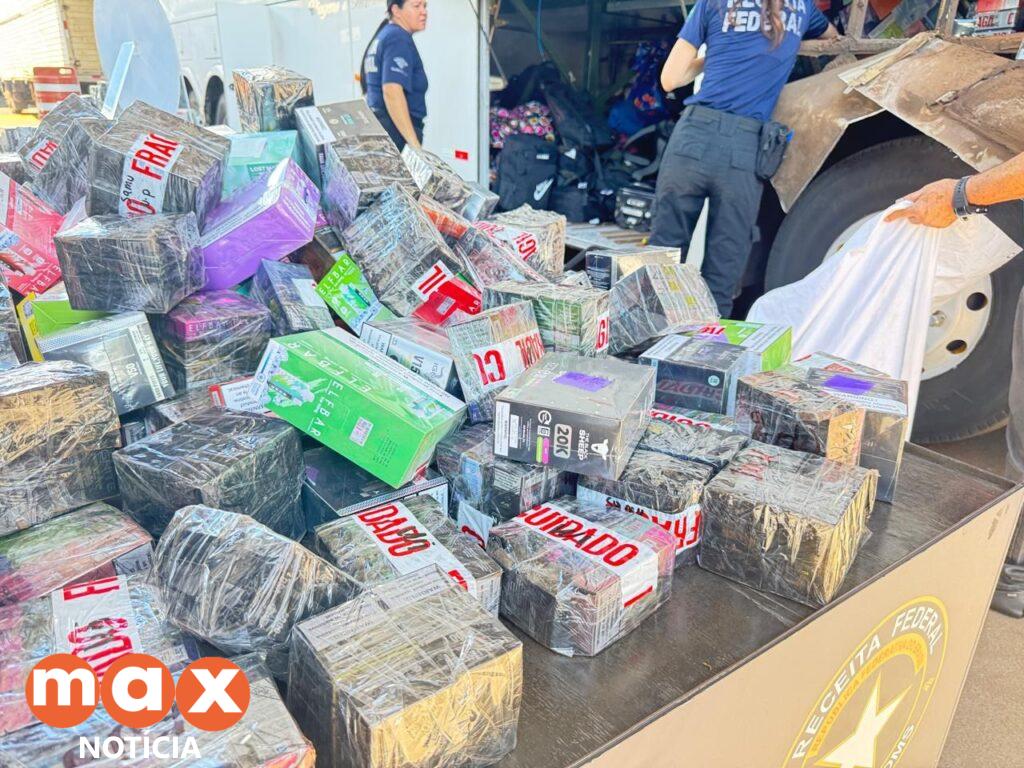 Receita Federal apreende R$ 500 mil em contrabando de eletrônicos e medicamentos em fundo falso de ônibus na Ponte Internacional da Amizade